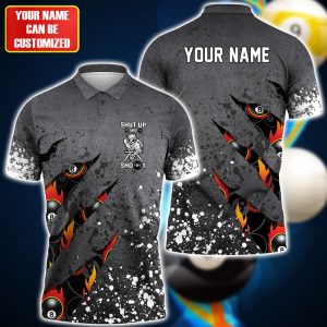 Personalized Name Billiard Pool 8 Ball Shut up and shoot 3D Shirt For Billiard Players