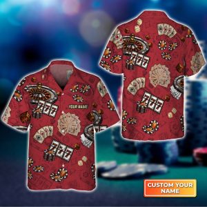 Casino Pattern Red Personalized Name 3D Hawaiian Shirt For Poker Players